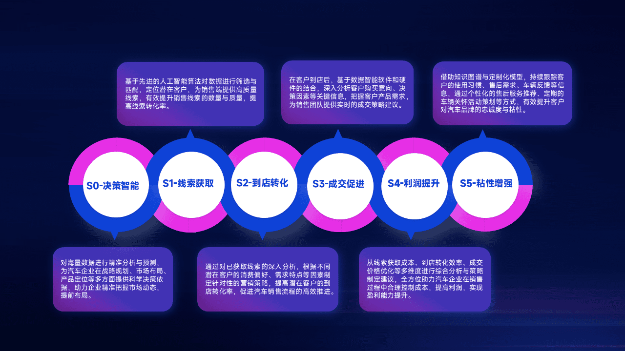 通过拓宽潜在客户来源、、、、优化线索分配并提高到店转化率,,以增强销售效率。。。同时,,,,利用线索数据不断优化分析模型,,,,有效提升转化率,,,扩大营销影响力。。