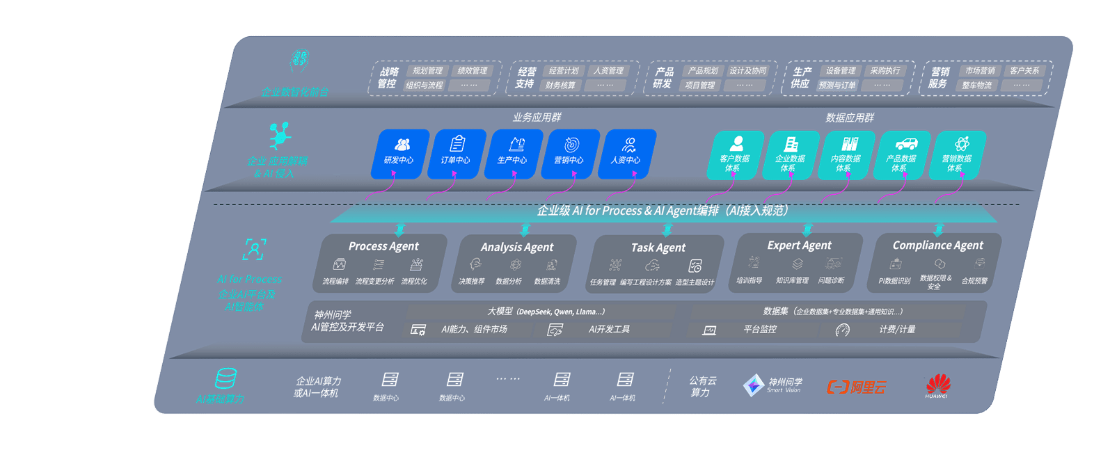 NG集团问学智车解决方案是一套基于AI技术的汽车行业智能化系统,,,覆盖从底层算力到顶层AI应用的全栈方案。。。方案由算力层、、、模型层和应用层组成:算力层,,,,方案支持多种一体机配置,,,,具备云端灵活部署、、、多云适配以及动态优化计算资源的能力;模型层,,NG集团问学平台版提供了企业级AI应用一站式构建与管理平台,,,,支持基于后训练强化技术的汽车企业专属模型的训练、、、评测和运营;应用层,,,,NG集团问学DeepSeek版提供包括超级员工、、、智能招采、、智能营销、、、智能客服、、、、AI for BI等一系列解决方案,,,,可助力汽车行业实现数字化转型,,,让管理更智能、、响应更敏捷。。。。